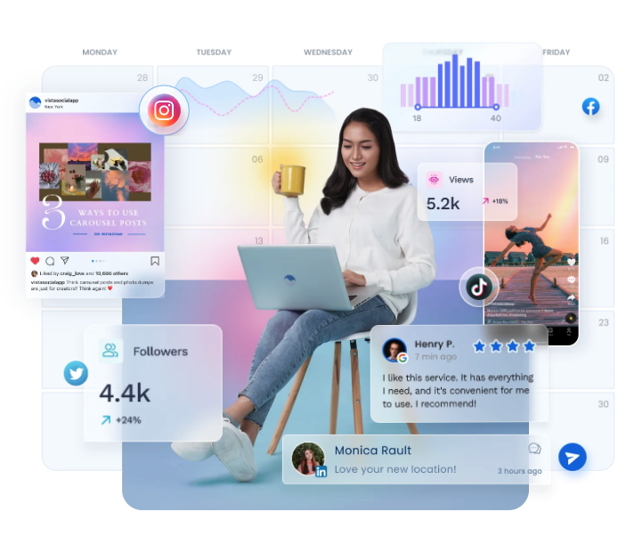 Vista Social is a complete tool that's helped me organize our daily work & mid/long-term social campaigns. Super easy to use, great features like full support for TikTok and Instagram, user tagging, inbox, automatic reports, reviews & listening.