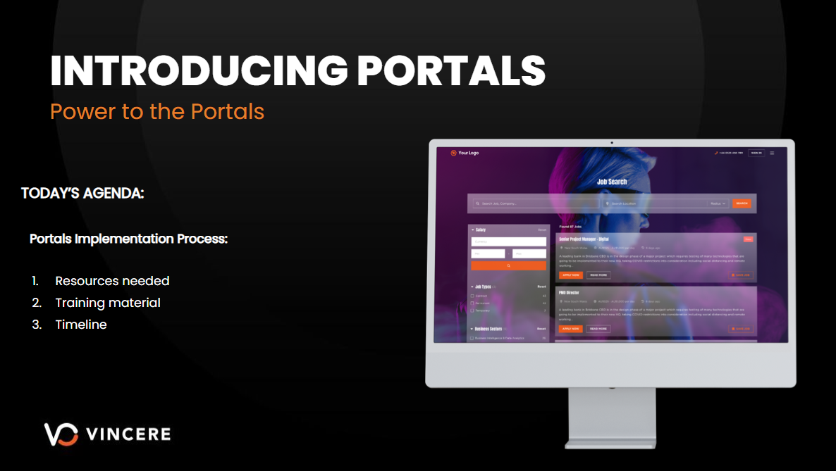 In this video, we will be walking you through the steps required to complete the Implementation of your Vincere Portals, including the needed resources from your business, the training material and support you can expect to receive, and an indicative timeline to complete the entire process.